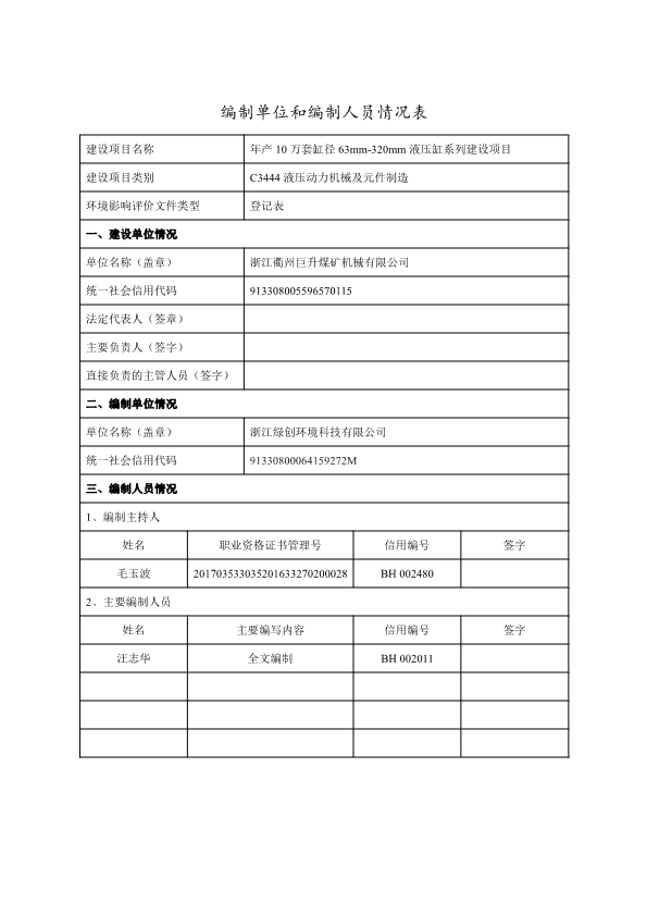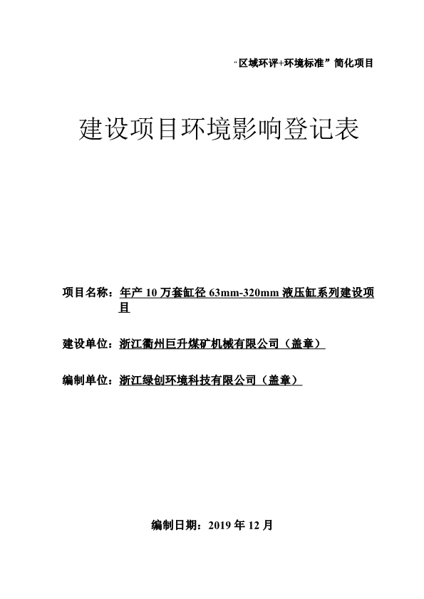 年產10萬套缸徑63mm-320mm液壓缸系列建設項目